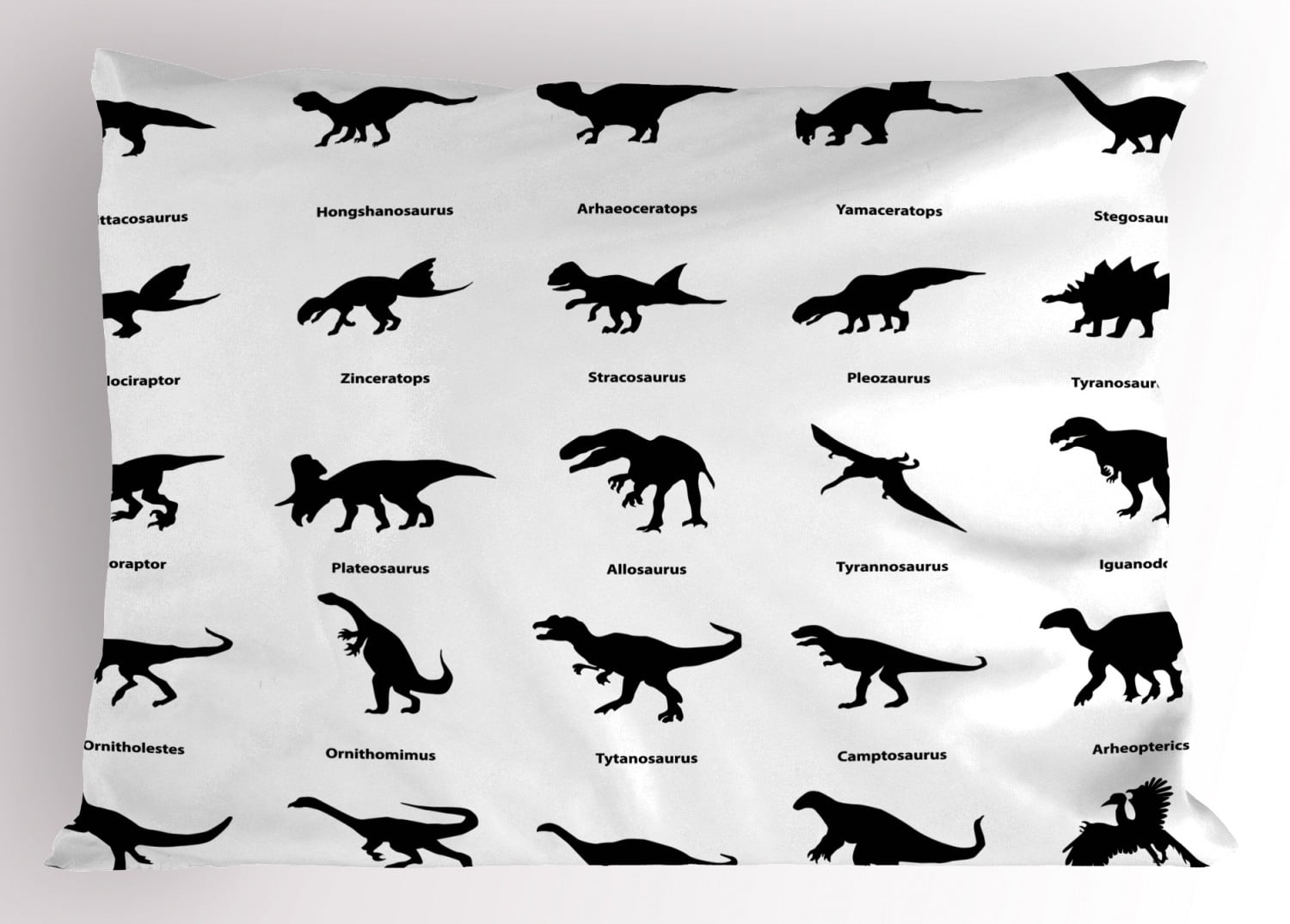 Dinosaur Pillow Sham Collection Of Different Dinosaurs Silhouettes With Their Names Evolution Wildlife Decorative Standard Size Printed Pillowcase 26 X 20 Inches Black White By Ambesonne Walmart Com